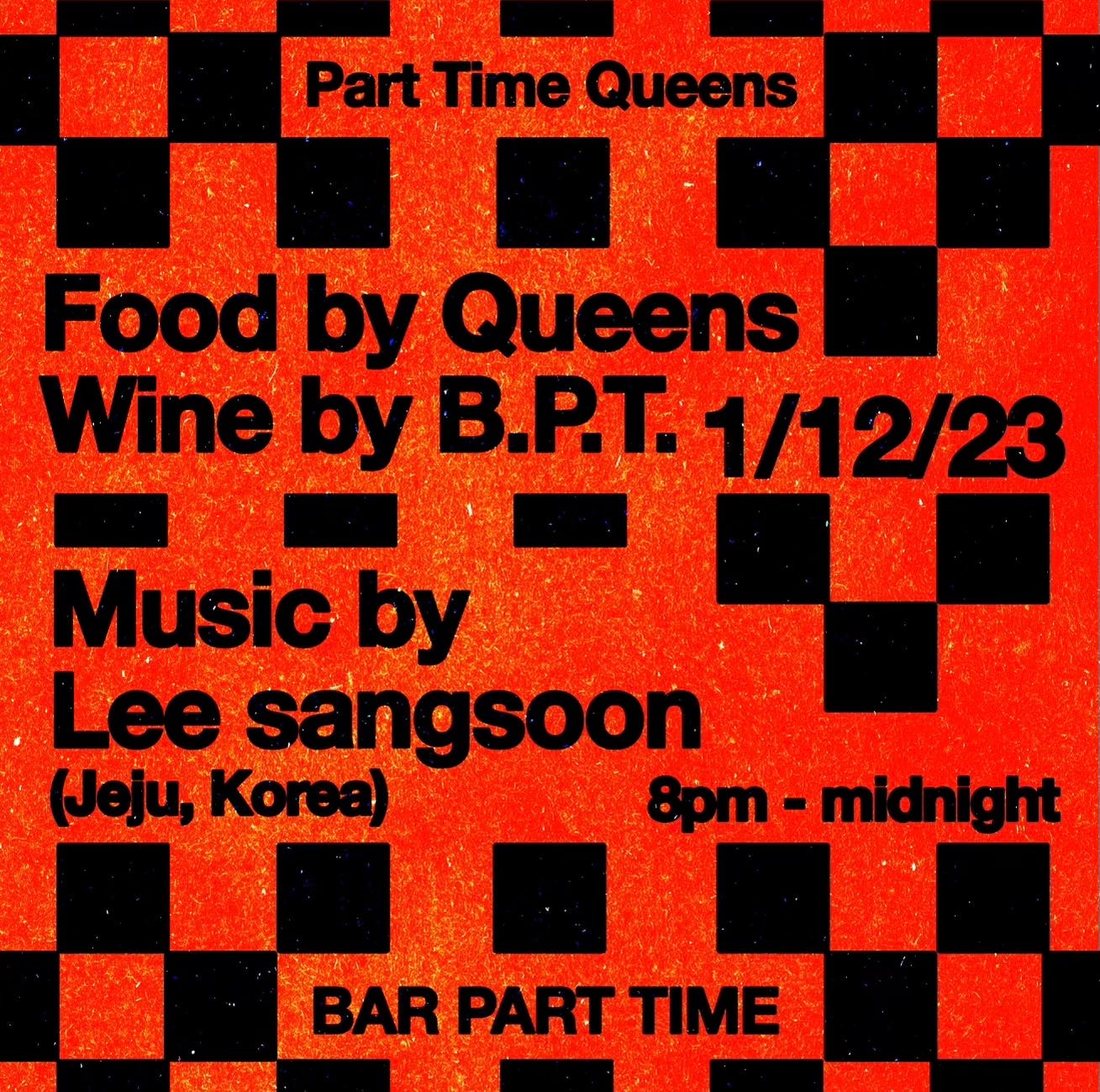 Fast-forward two years and many reunion related conversations later, we're finally circling back and throwing a party for the masses on January 12th. This time, we've invited our good friend and DJ extraordinaire, Sangsoon Lee, from Jeju to take over the tunes. It's his first time playing in the US and what better place to pop the vinyl cherry than at B.P.T. We are psyched.