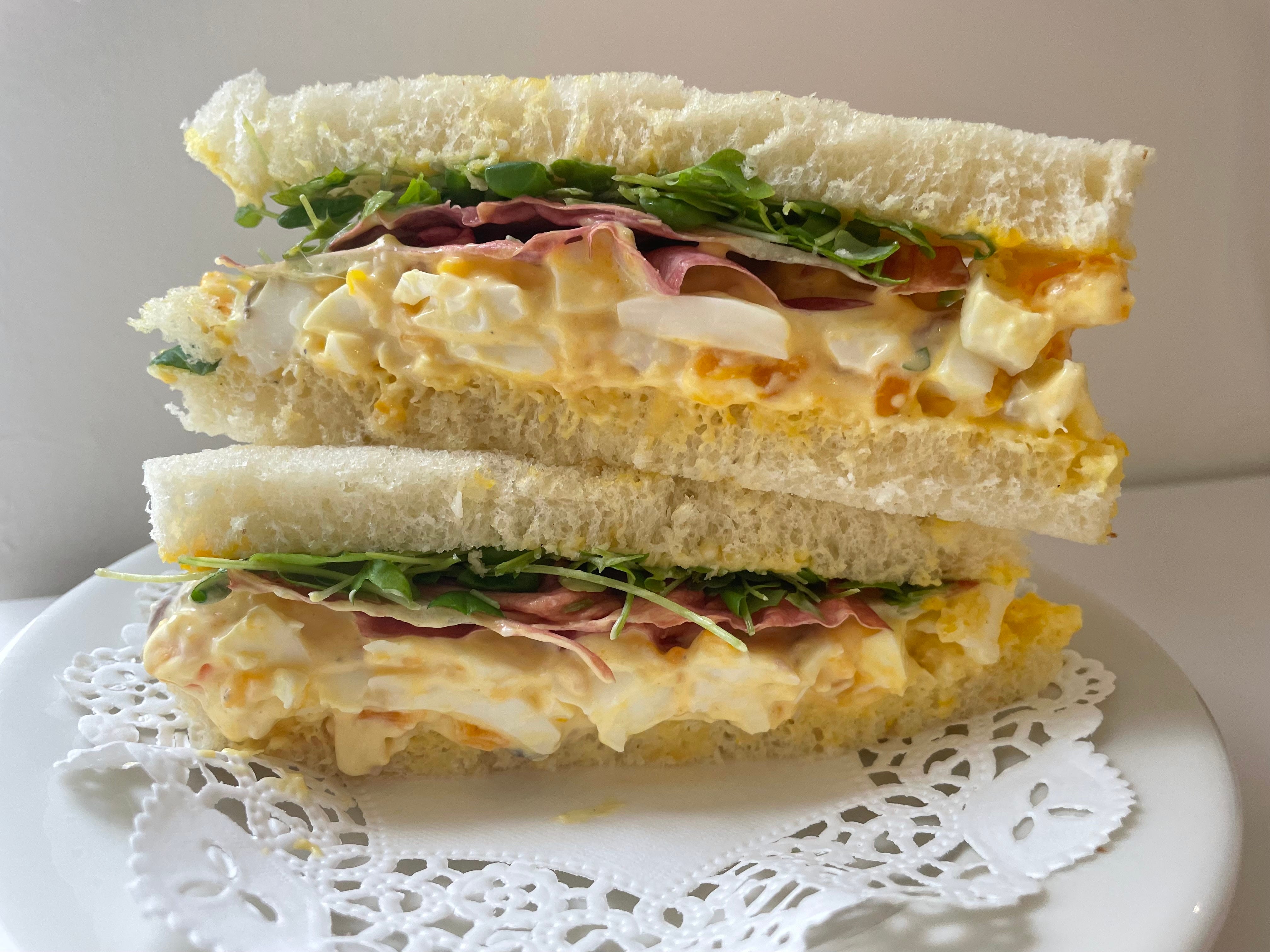 Layer the egg and anchovy mixture first on top of your first slice of bread. Top with greens and cover with your second slice of bread.